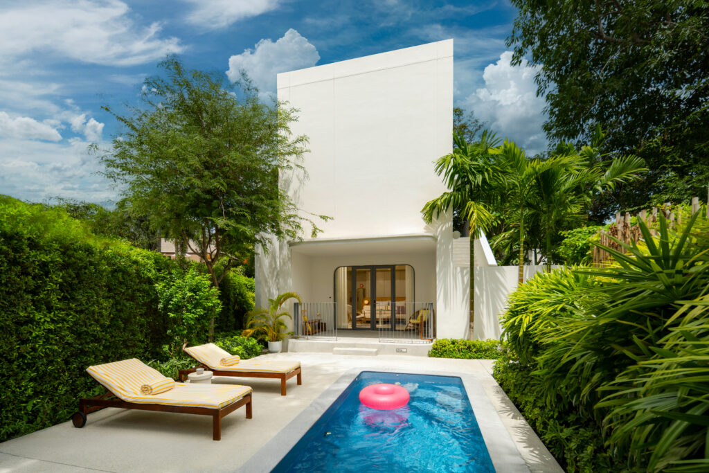 あこがれのプライベートプール付きの客室はなんと112sqm。最大収容人数は4名 ペットもOK