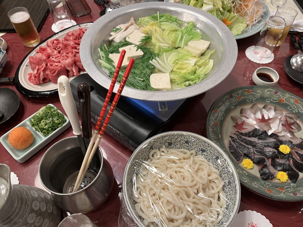 フロント横から通路を抜けるとレストランがあり、モーニング、ラウンド中の昼食を提供している。さらに宿泊者を対象にこれからの季節にピッタリの鍋料理、焼き肉などコースメニューを夜に提供している。アルコールをあり飲み放題プラン(2時間)もあるので思い思いにゴルフ仲間や大切なパートナーとディナーを愉しむことができる。