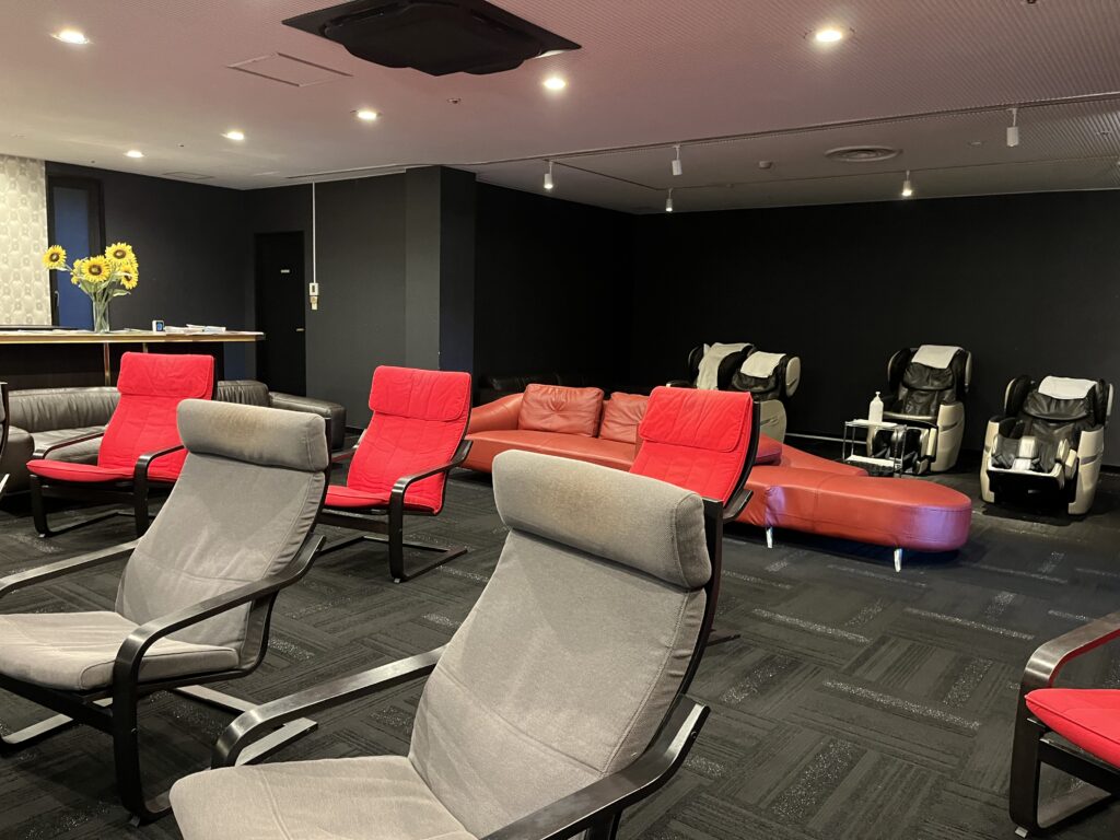 ただ宿泊するだけでなく、この施設には宿泊客を飽きさせないスペースがある。大浴場でゆったりとくつろぐのもよし、リラクゼーションルームには大型液晶モニターで海外ゴルフトーナメントを観戦できたり、マッサージチェアで身体の面たナンスもできる。また、プライベートの麻雀ルームやカラオケルームも完備(予約制・有料)。ぜひ、利用したいものである。
