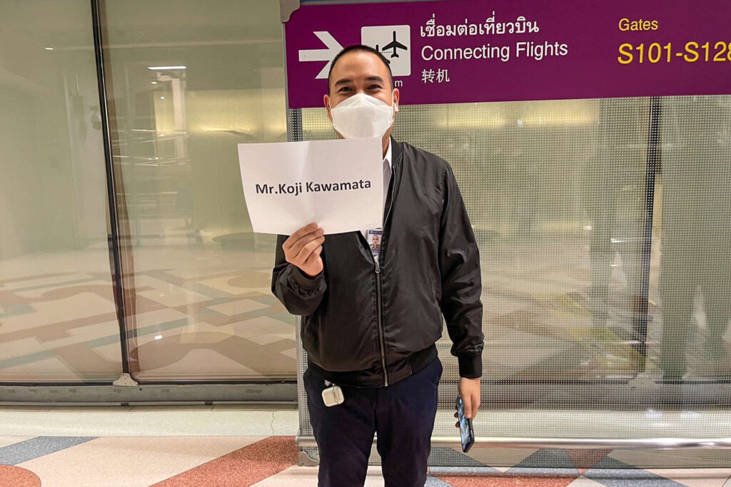 スワンナプーム国際空港着の飛行機を降りたところでスタッフがお客様をお迎えいたします。