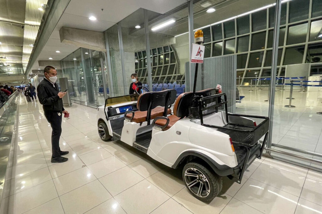 カートに乗って優先イミグレーションまでご案内、入国審査、荷物ピックアップ、送迎担当者の場所までご案内いたします。