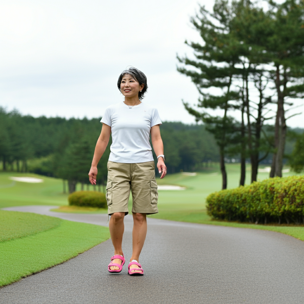 ラウンド終了後はポロシャツやティーシャツに短パン、サンダル、スニーカーでもOK