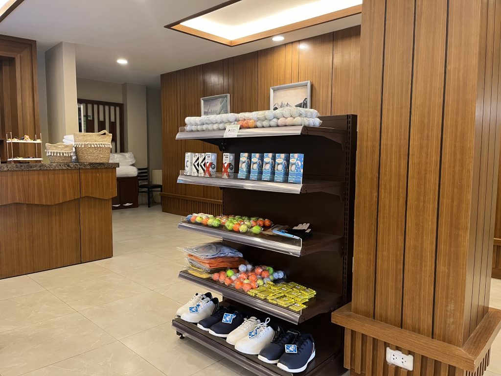 クラブハウス横にキャディバッグを降ろすエリアがあり、キャディーさんが待機している。クラブハウスロビーを入るとすぐフロントがありチェックインを行う。プロショップもまだグランドオープンはしていない状態で必要最低限の小物アクセサリーを置いている程度。レストランあるがフロントまわりを利用したスタイルで。クラブハウスはバブル感はないが今後、プロショップやクラフトマンショップもオープンする予定。