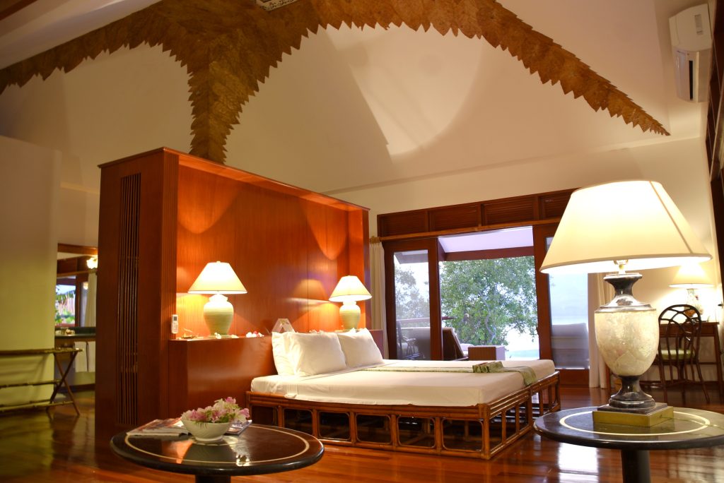 各ルームには広々としたバルコニーがあり、バルコニーからは美しいガーデンだけでなくシービューを選択可能。伝統のフィリピン様式の施設は温かみのあるデザインで空間に癒されるとはまさにこのことであろう。全44スイート